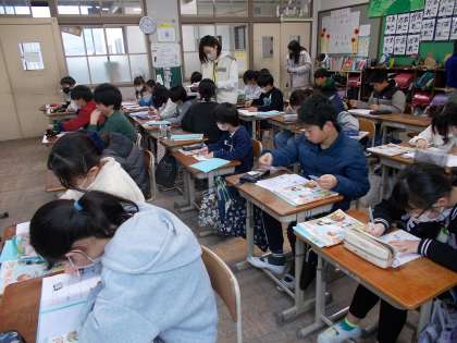 外国語の授業で、英語で人柄や性格を伝え合う学習をしていました。