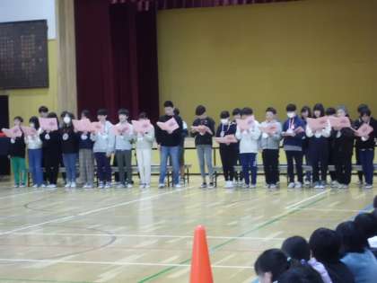 みんなで、歌を歌ったり、詩を読んだりして、6年生をお祝いしました。