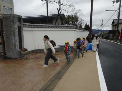 町別児童会の班長が変わり、今日から登校班のみんなを連れて登校してくる姿が見られました。
