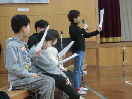 緊張したと思いますが、1人1人堂々と話す姿を見て、またひとつ成長を感じました。他校の先生方からも「司会上手だったよ!」「ばっちりだったね!」など褒めていただき、嬉しそうな表情をしていた子ども達でした。