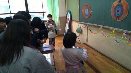 光の子学級のゲーム屋さんに、6年生が遊びに来てくれました。