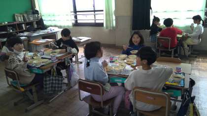 今年度最後の給食を味わって食べていました。おかわりする子もいましたよ。