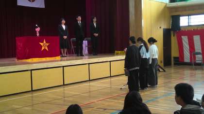 今日は離任式がありました。お世話になった教職員とのお別れはさみしいですが、これまでに教わったことを忘れずに、みんなでより良い鷹峯小学校を作っていきましょう。