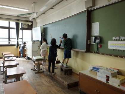 3年生が、教室の清掃をしていました。