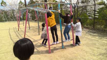 うんてい・サッカー・パカポコポコなど、自分がしたいことを見つけて遊んでいました。一緒に遊ぶ教職員の姿も見られました。