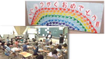 今日は、本年度初めての給食でした。給食の献立を紹介するボードも委員会の子どもや教職員が用意してくれました。