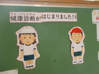 健康診断が始まりました。1年生が視力検査をしていました。