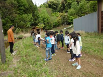 1年生が、ビオトープに探検に行きました。