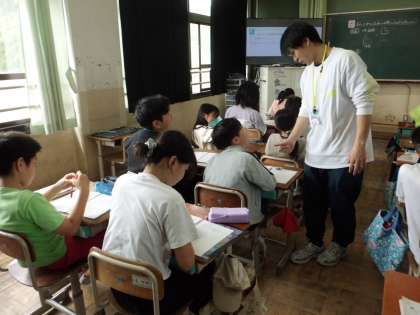 算数の授業の様子です。複合図形の立体の体積の求め方を学習しています。