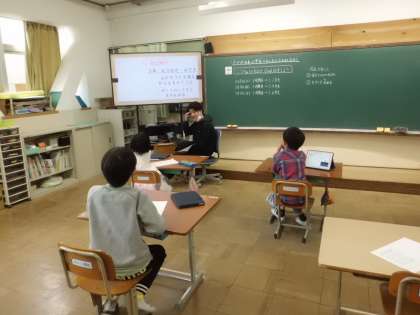来週開かれる、低、中、高学年との交流会のために学級の紹介などの準備をしていました。