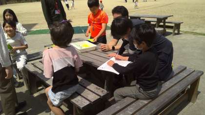 写真3枚目:4年生は理科の学習で、気温を計りプリントに記入していました。「24度だよ!」と教えてくれました。