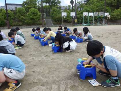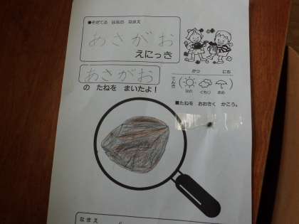 生活科の授業で、アサガオの種まきをしました。