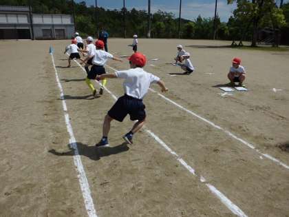 反復横跳びは、2年生から6年生まで実施しています。