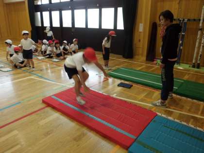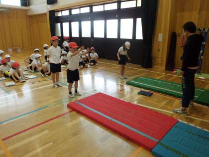 立ち幅跳びは、講堂で実施しました。
