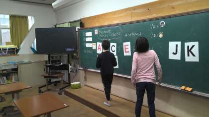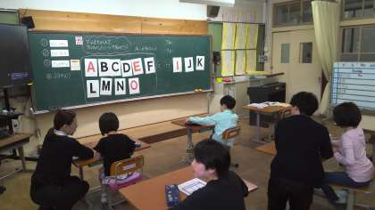 外国語の学習の様子です。今日は、ゲームを楽しみながらアルファベットの大文字について学びました。