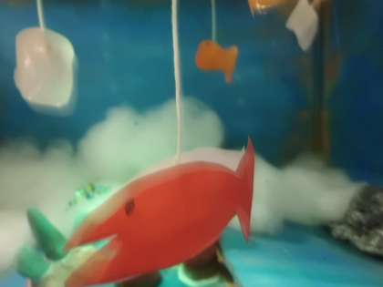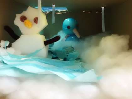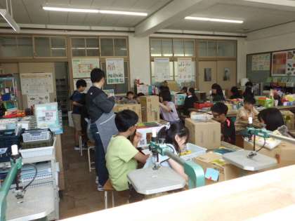 図工の授業の様子です。思い思いの世界を箱の中につくっています。