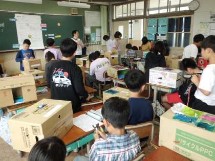 それぞれ箱の中につくった空間を互いに見あって鑑賞ノートを書いていました。