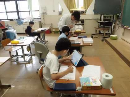 国語の授業で、漢字の書き取りや読みの練習問題をしていました。