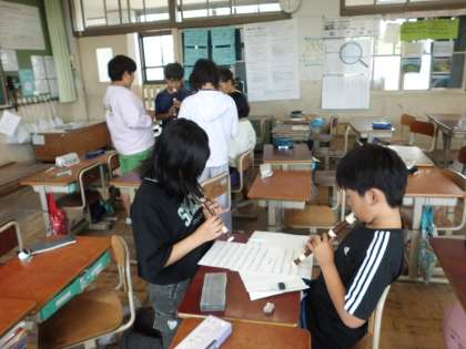 中間休みに、メダカの世話やリコーダーの練習などをして過ごしていました。