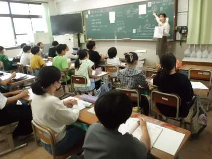 算数の授業の様子です。分数で表された時間について考えています。
