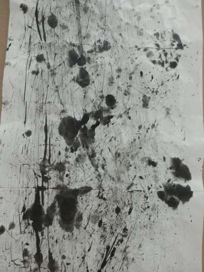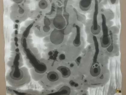 『墨と水から広がる世界』。ぼかし、にじみ、かすれなどいろいろな表現の仕方を工夫しています。