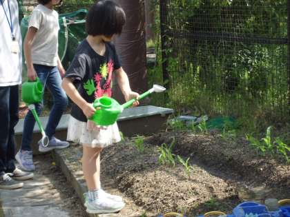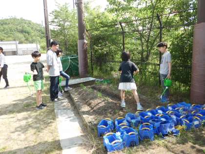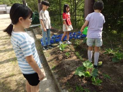 光の子学級はトウモロコシ、4年生はヒョウタンを育てています。