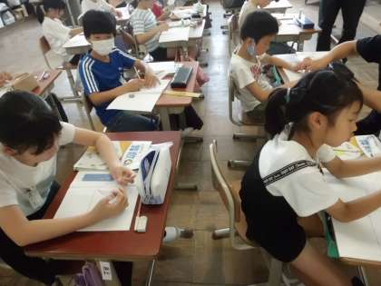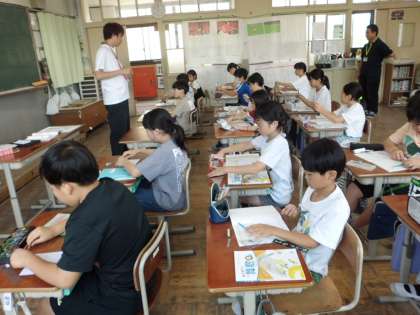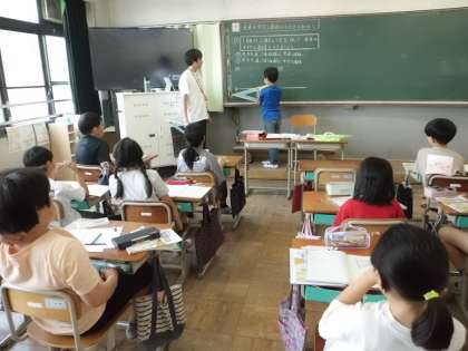 算数の授業です。垂直や平行な直線のかき方について学習していました。