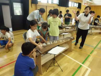 尺八の吹き方、爪をつけて箏の演奏を体験しました。