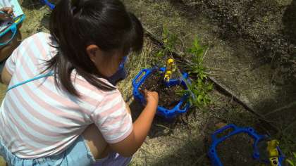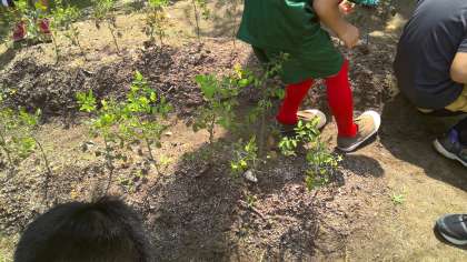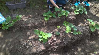 2年生が、さつまいもの観察をしていました。