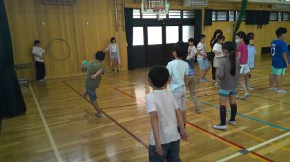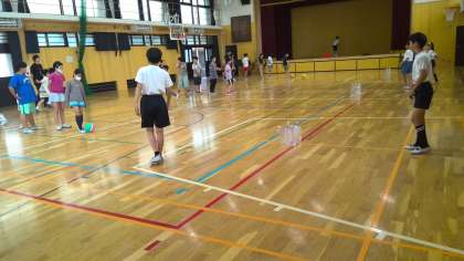 講堂にて体育委員会が企画してくれたケーリング・シューティングをしました。今日の中間休みは、5年生が楽しみました。体育委員会のみなさん、ありがとう!