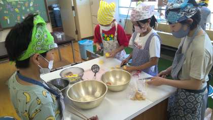 家庭科の学習の様子です。今日は家庭科室にて調理実習をしました。