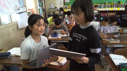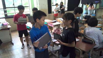 外国語の授業の様子です。Unit2のメイン活動として、今日は友達とプレゼントカードを贈り合う活動をおこないました。今日の活動をとても楽しみにしていた子どもたち。この日に向けて、ロイロノートを使って作ったカードを友達に見せると喜んでもらえて嬉しかったようです。