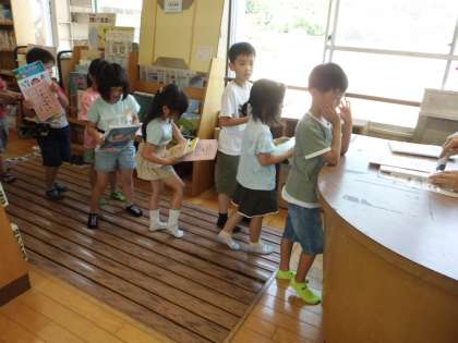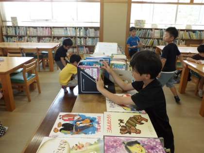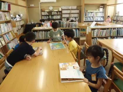 図書館で本を選んだり借りたりしています。