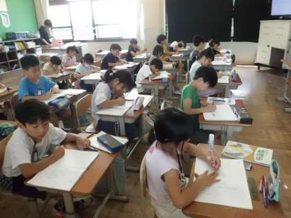 ぼうグラフで表すよさを見つけ、かき方を調べています。
