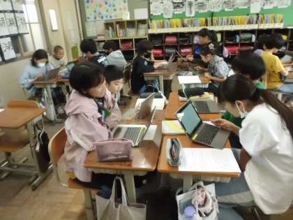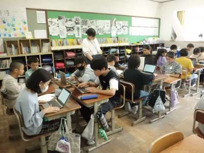 国語の授業の様子です。デジタル機器の使い方について提案する文章を作成しています。