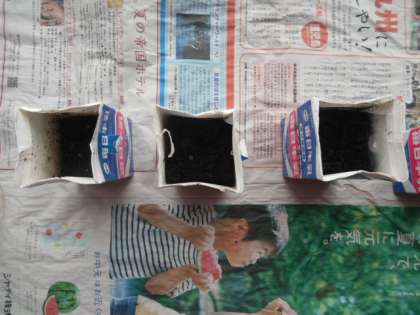 ツルレイシは,一人一つずつ牛乳パックで苗を育てています。なかなか芽が出てこないのですが,みんな毎日様子を観察しています。