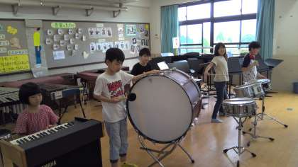 音楽の学習の様子です。今日は音楽室にて合奏をしました。自分で楽器を選び、みんなで「きらきら星」を演奏しました。回数を重ねるごとに上達しています。
