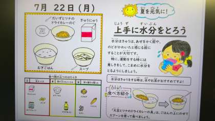 2学期の給食再開は、8月26日(月)です。初日から給食があります。エプロンや給食袋を忘れないように持ってきてくださいね。