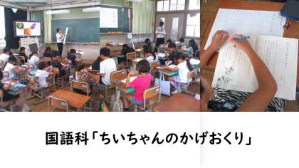 第3学年では、いま、「ちいちゃんのかげおくり」の学習をしています。「ちいちゃんのかげおくり」は、子どもたちが国語科の教科書で出あう、初めての戦争文学です。手立てとして、「出征」「焼夷弾」「当時の食事」等、子どもたちがイメージしにくい様子については、写真資料を用いて捉えることができるようにしていました。