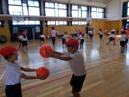 3・4年生も4時間目に、「サンガつながり隊」のインストラクターの方にサッカーを通して体を動かす楽しさや友達と協力する大切さを教えていただきました。