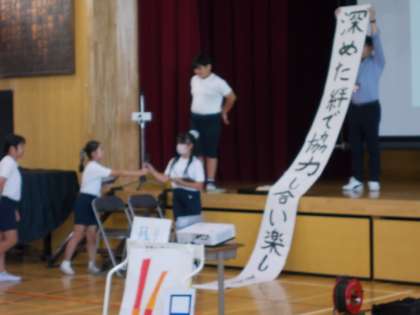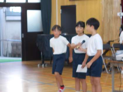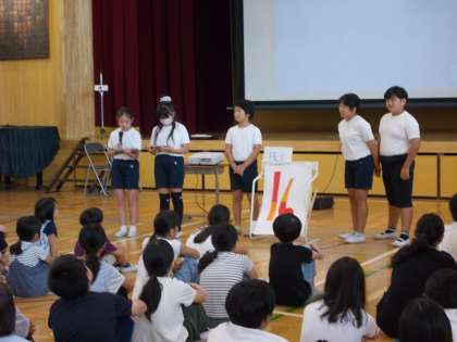 児童会本部から、10月の目標「深めた絆で協力し合い楽しもう!」のアピールがありました。『スポーツフェスティバルまでの残日数カレンダーを作成しています。毎日デザインが変わるので楽しみにしてください。』