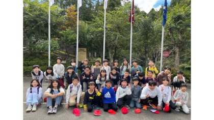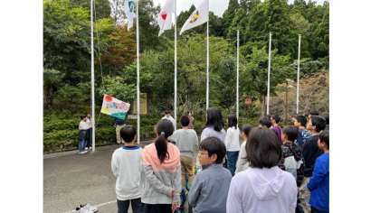 入所式では、山の家に校歌を声高らかに響かせました。