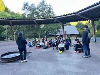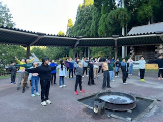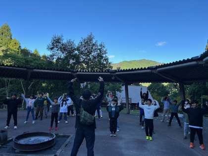 3日目、朝の集いの様子です。体操もしました。
