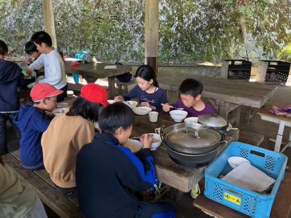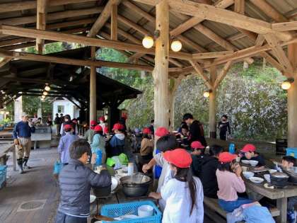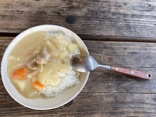 クリームシチューです。1日目のカレーづくりの経験が生かされ、6つの班すべてがとても美味しいクリームシチューをつくっていました。