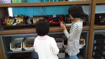 音楽の学習の様子です。手遊びや歌を歌ったあと、今日は合奏をメインに学習しました。ペアで楽器を決め、同じリズムを奏でます。「ミッキーマウスマーチ」のリズムに合わせ、上手に奏でることが出来ました。