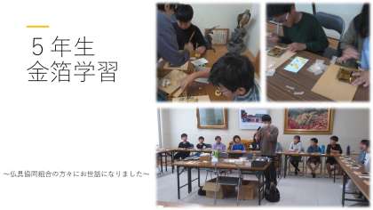本日、5年生が仏具協同組合の方々から金箔について学ばせていただきました。