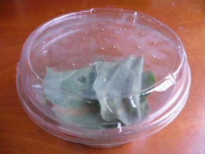 見つけたたまごは,プラスチックの容器に写真のようにセットして,これからアオムシになり,やがてモンシロチョウになっていく様子を観察します。