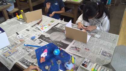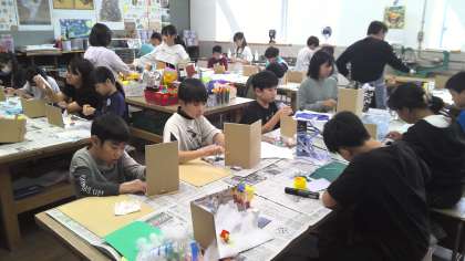 図工の授業『ミラクル ミラーワールド』の様子です。