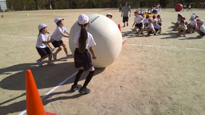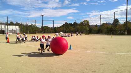 大だまころがしやリレーの練習をしていました。