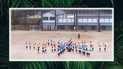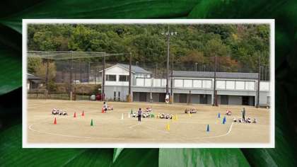 雨時々曇の天気の中、晴れ間のときに鷹峯スポーツフェスティバルの前日の取組をしている学年がありました。